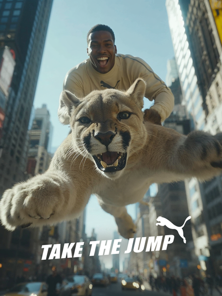 Dans cet exercice de style pour Puma, j’ai imaginé des visuels où le mouvement devient instinct, et où chaque saut raconte une prise de risque.
